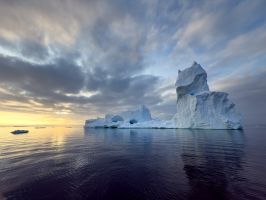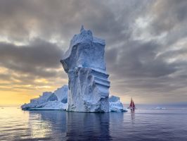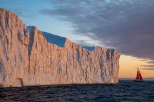 Iceberg floating in front of the village of Ilulisatt in Greenland